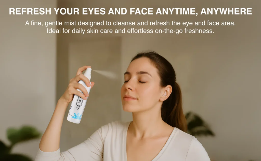 As a fine mist, it spreads evenly across the surface of the skin, helping to loosen and lift away daily buildup, environmental debris, and excess oil without leaving residue. It then evaporates cleanly, leaving the skin feeling refreshed, balanced, and comfortably hydrated in appearance. Used as part of a daily cosmetic routine, it offers a simple way to keep the eyelids and face looking clean, calm, and well cared for.